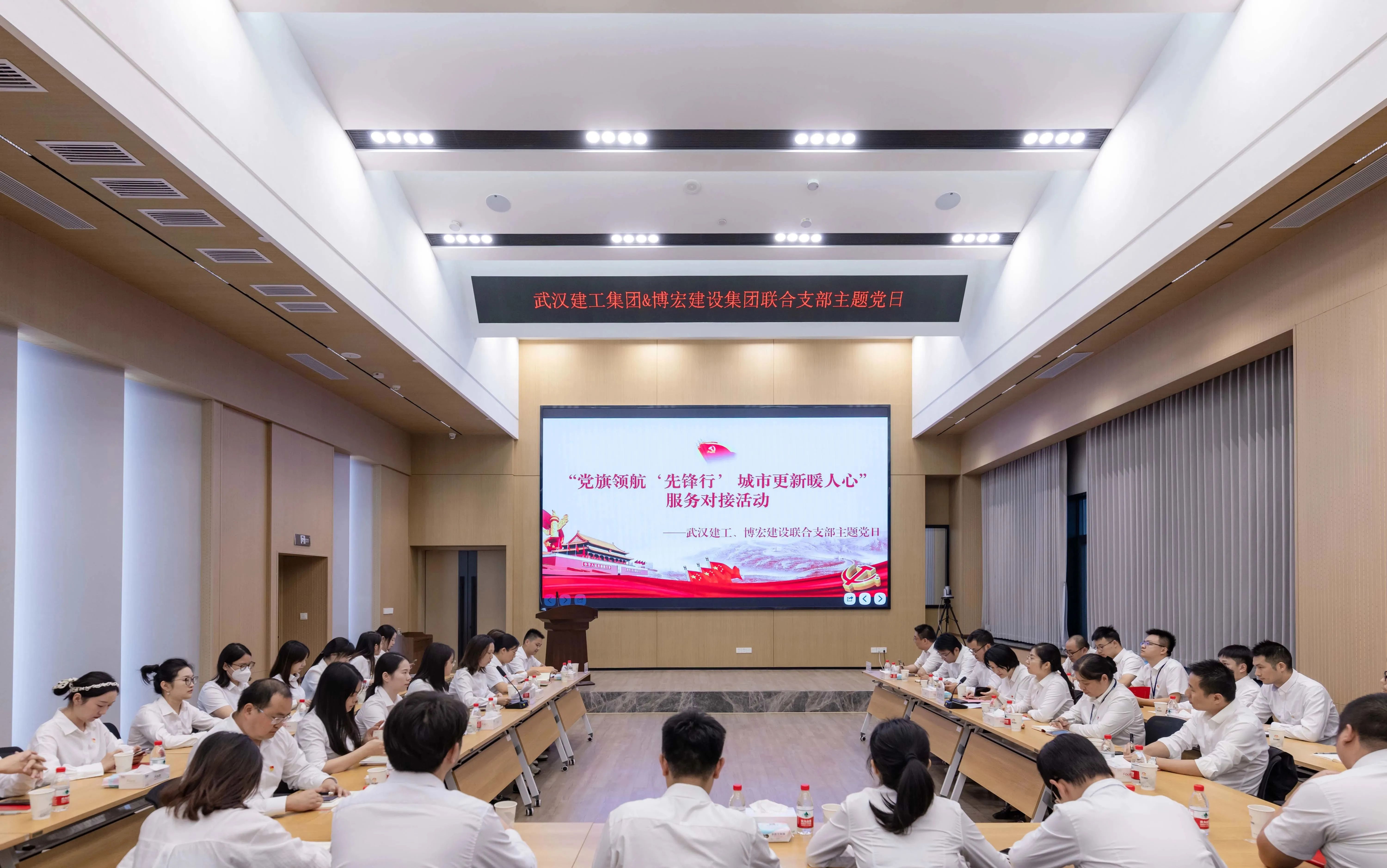 為進(jìn)一步豐富黨員政治生活,充分發(fā)揮黨支部聯(lián)建的優(yōu)勢互補(bǔ)作用,黨建引領(lǐng)推動業(yè)務(wù)發(fā)展行穩(wěn)致遠(yuǎn),10月19日下午15:00,博宏建設(shè)集團(tuán)聯(lián)合武漢建工集團(tuán)組織開展了“黨旗領(lǐng)航‘先鋒行’, 城市更新暖人心”十月聯(lián)合支部主題黨日活動,博宏建設(shè)集團(tuán)和武漢建工集團(tuán)黨員代表參加活動。